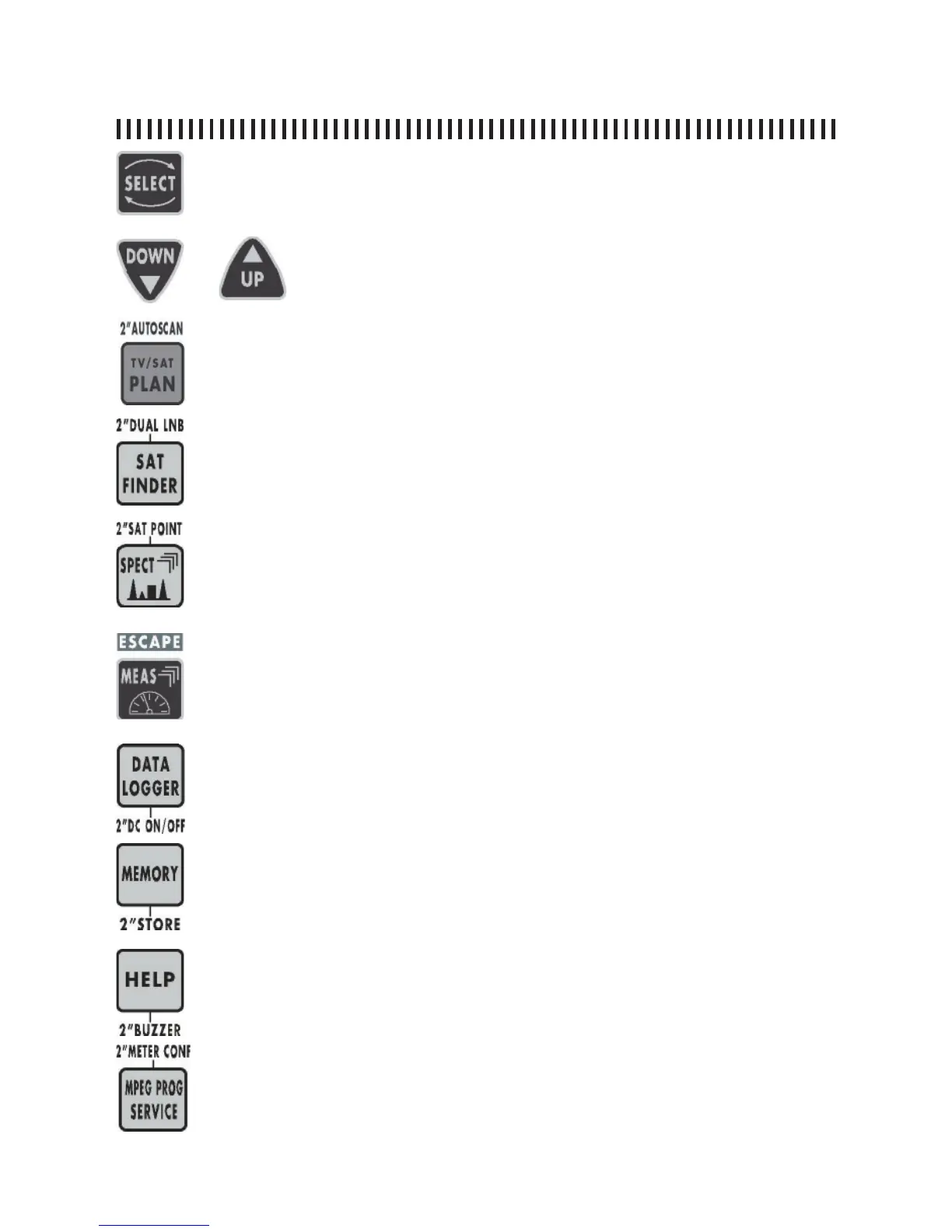 • If pressed for 2” it will enable the Dual Feed dish alignment feature.