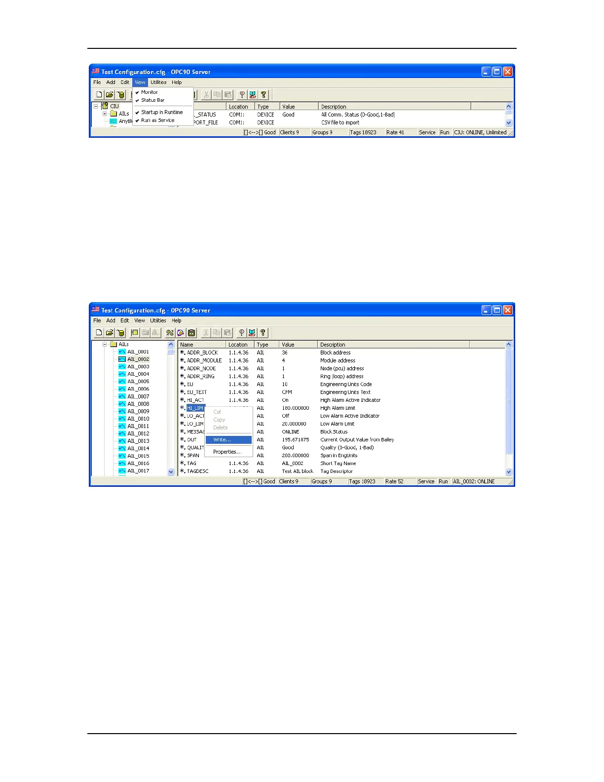 Some tag values have write access and can be written from within the OPC90