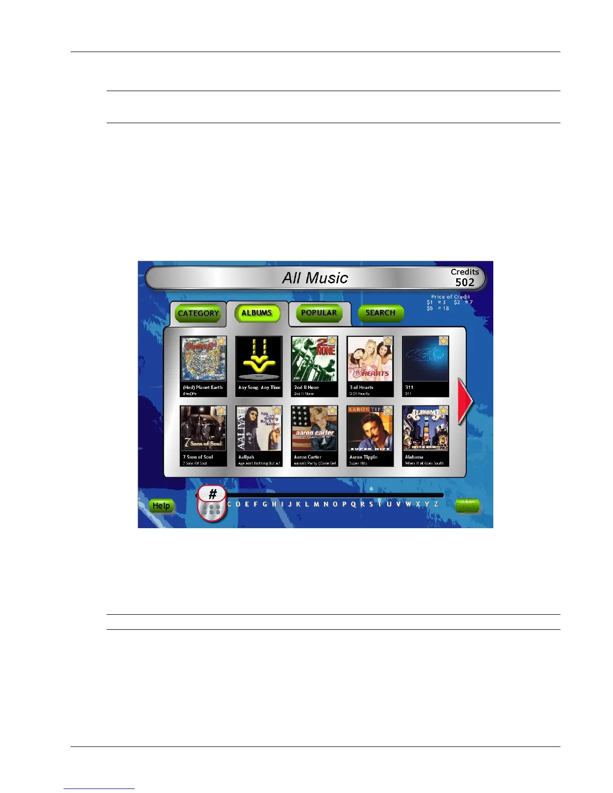 1. Browse through album covers on the local jukebox by touching the red arrow keys on