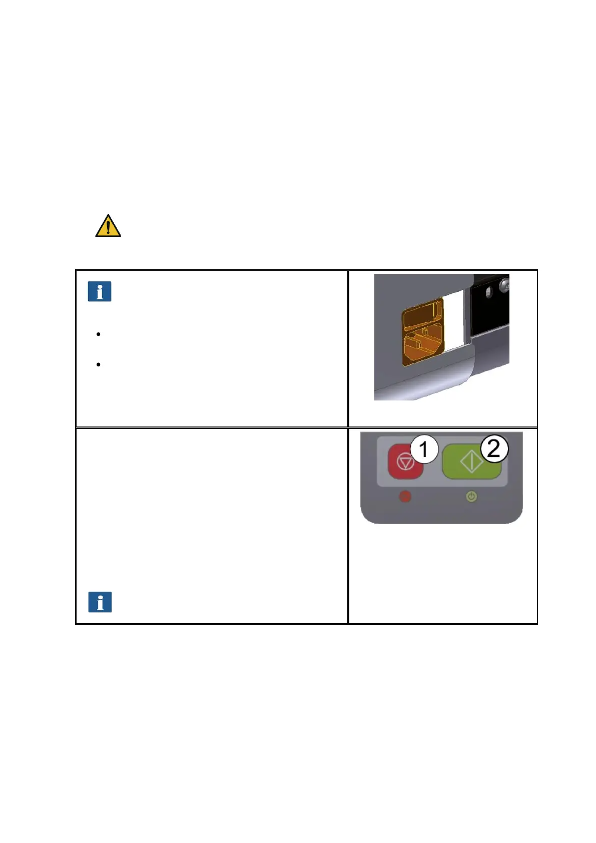 LED under the green button (2) on the control panel (see Figure 3.2) lights up.