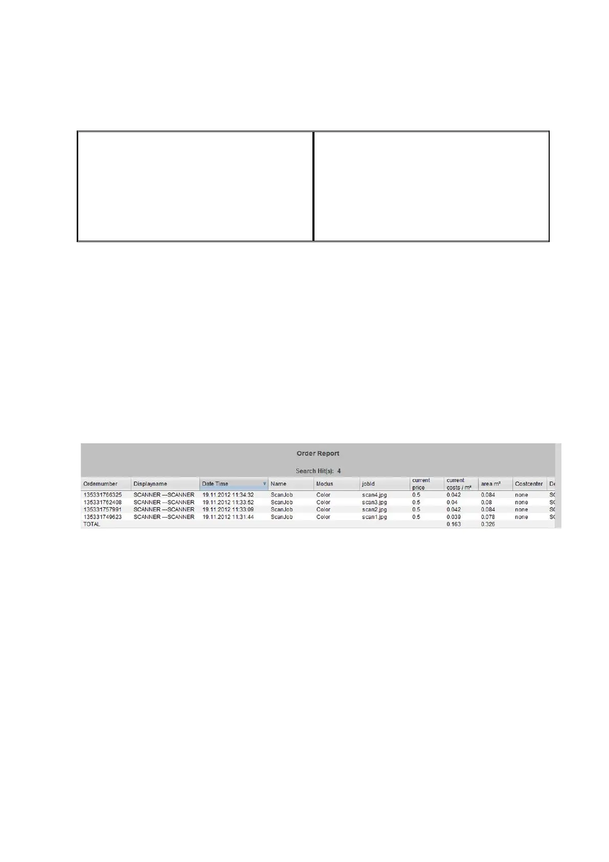 Figure 7.3: Order report table