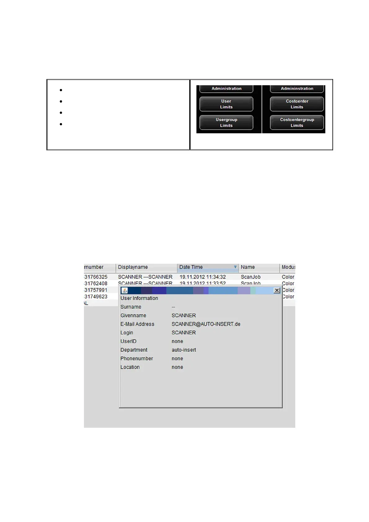 Setting of limits for users, user groups, cost centers, and cost center groups is effected