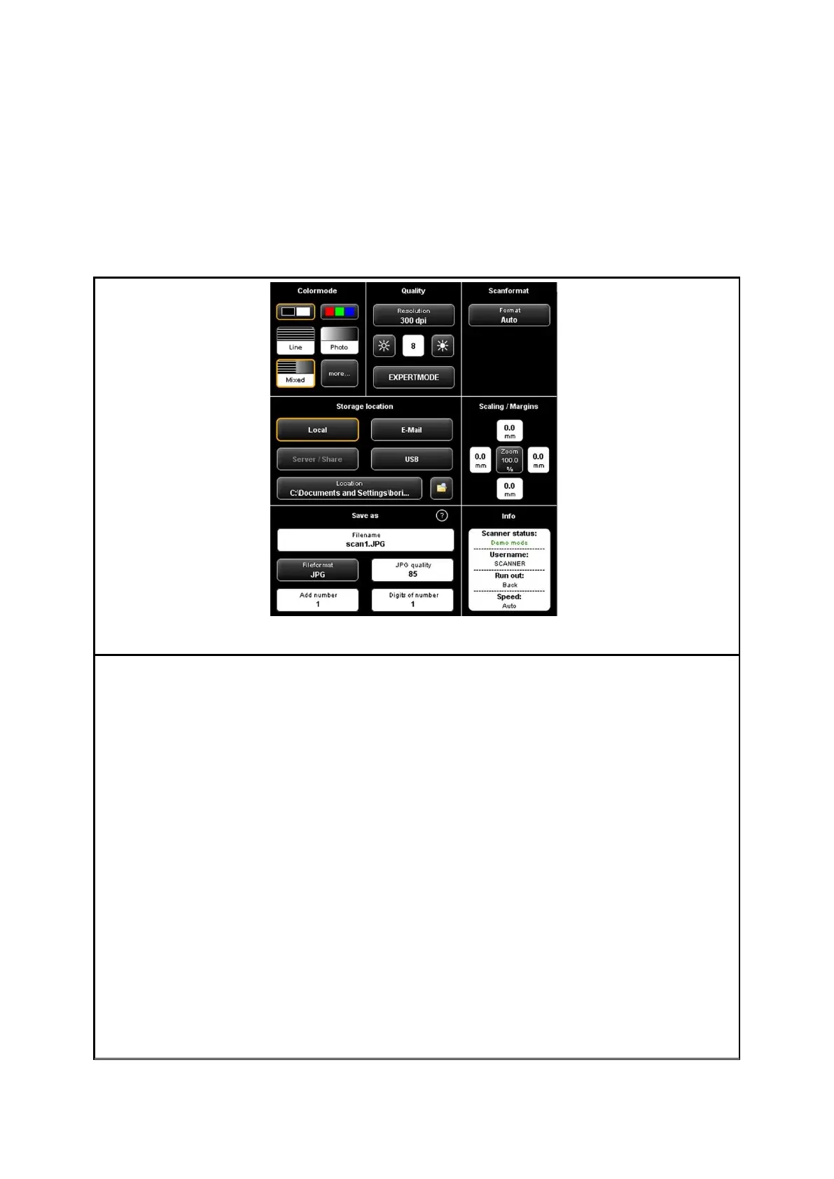 Quality: Here, you can set resolution and brightness for subsequent scans and