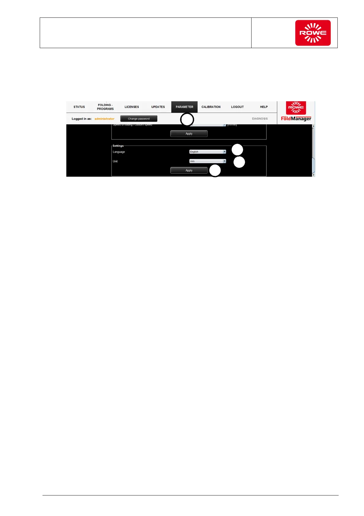 1. Log in as administrator and go to the "Parameter" menu.