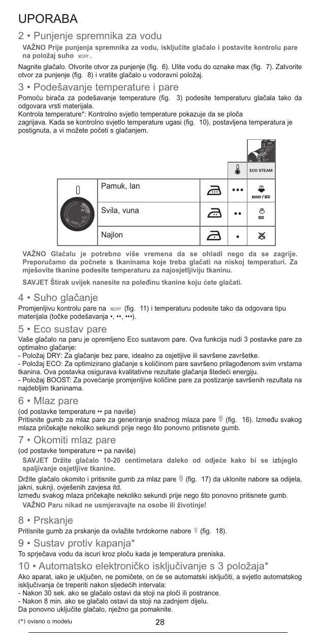 tkanina. Ova postavka osigurava kvalitativne rezultate glačanja štedeći energiju.
