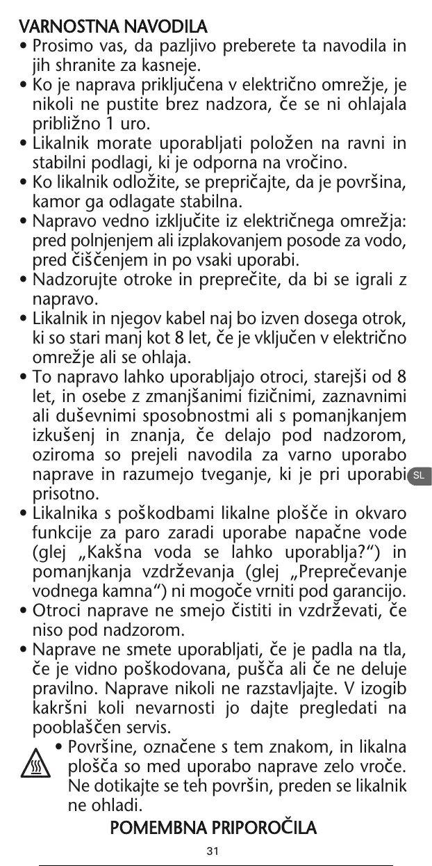 Ne dotikajte se teh povrLin, preden se likalnik