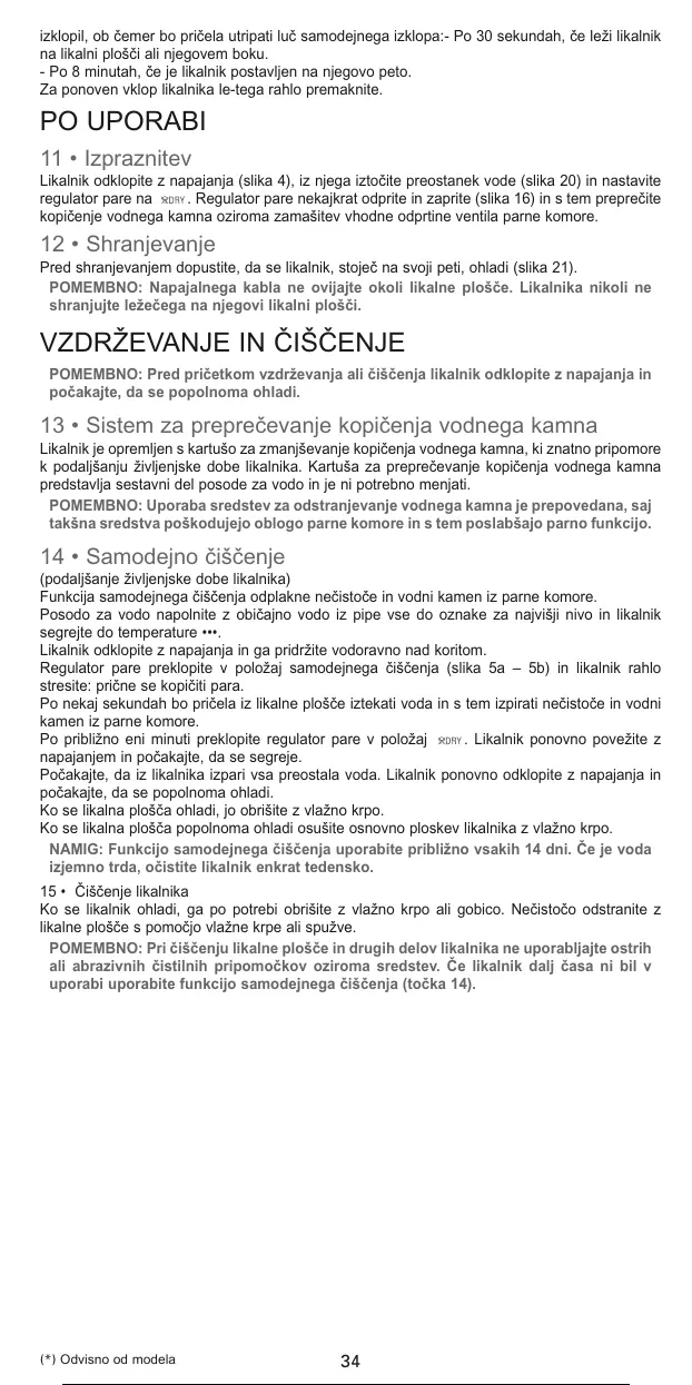 POMEMBNO: Pri čiščenju likalne plošče in drugih delov likalnika ne uporabljajte ostrih