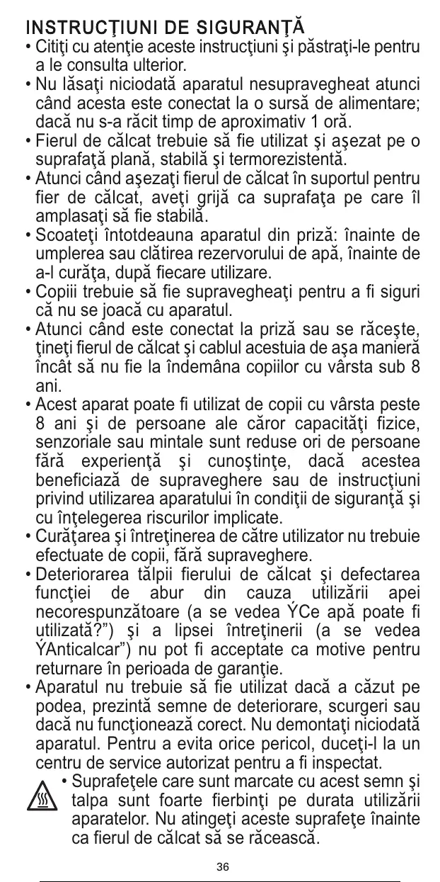 • Fierul de cYlcat trebuie sY fie utilizat Ri aRezat pe o