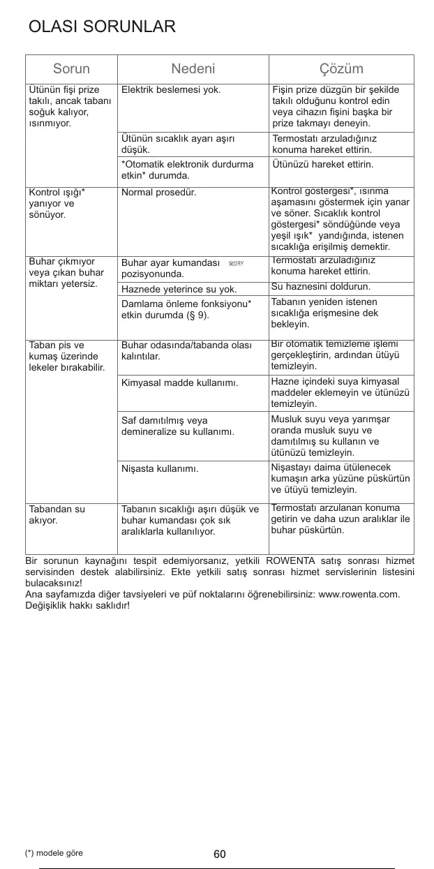 Bir sorunun kaynağını tespit edemiyorsanız, yetkili ROWENTA satış sonrası hizmet