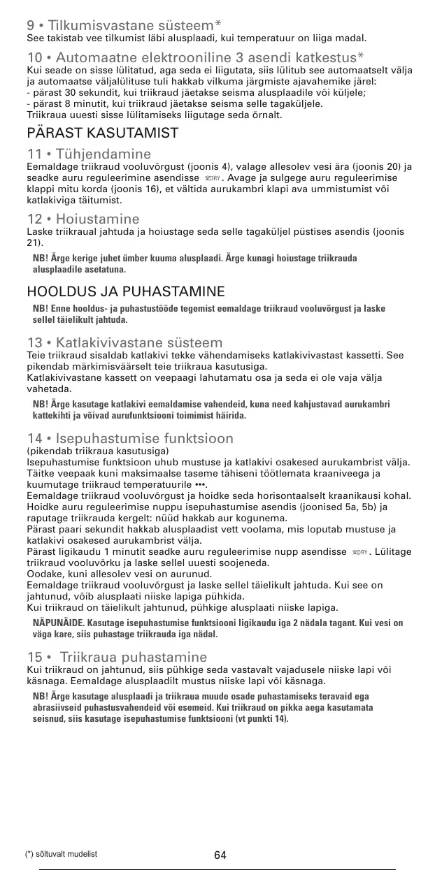 NB! Enne hooldus- ja puhastustööde tegemist eemaldage triikraud vooluvõrgust ja laske