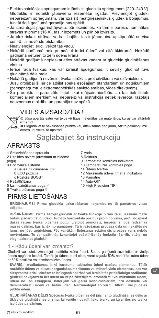 BRĪDINĀJUMS! Pirms lietojat gludekli ar tvaika funkciju pirmo reizi, iesakām mazu