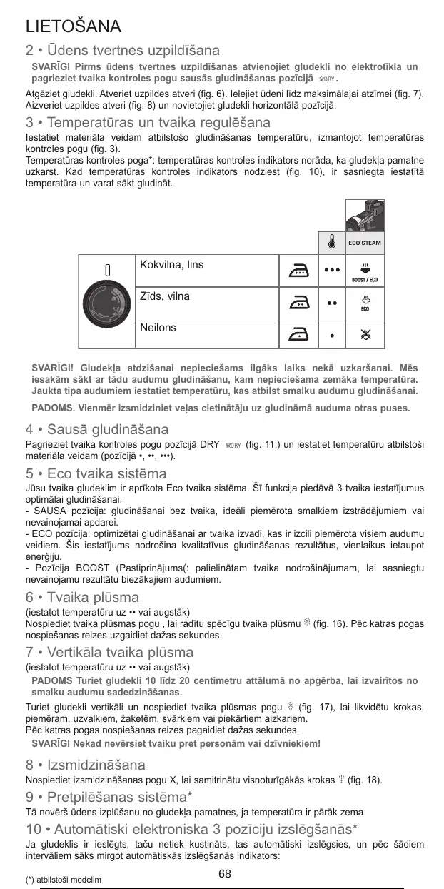 Jūsu tvaika gludeklim ir aprīkota Eco tvaika sistēma. Šī funkcija piedāvā 3 tvaika iestatījumus