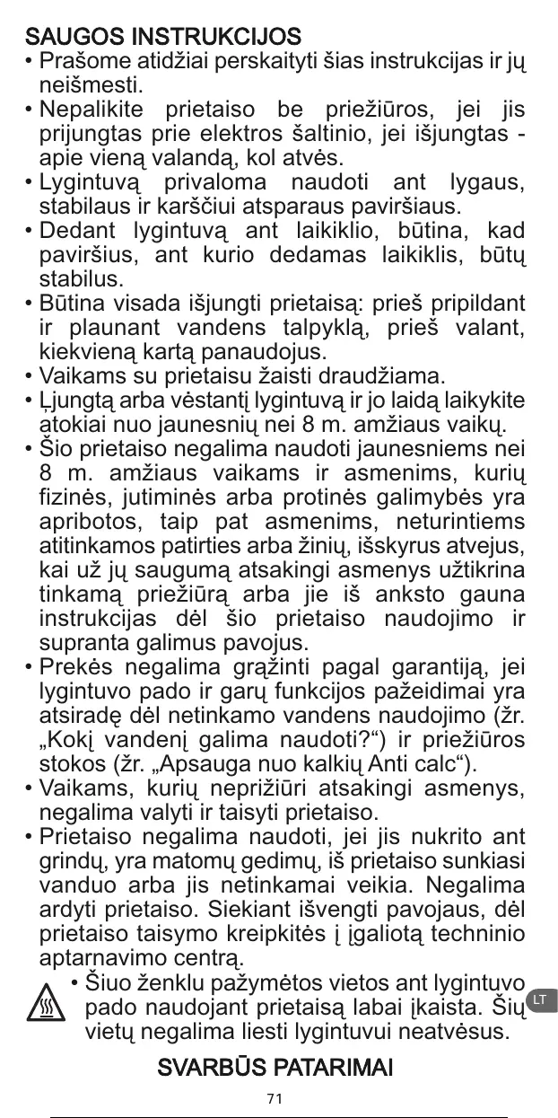 • Šiuo ženklu pažymėtos vietos ant lygintuvo
