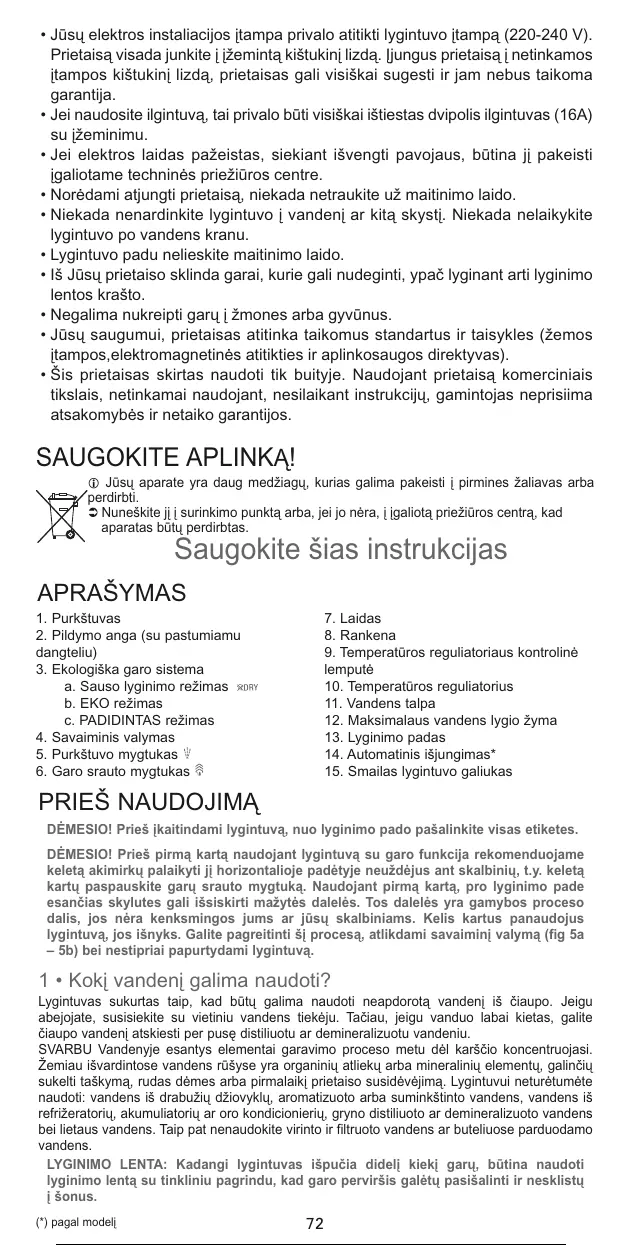• Negalima nukreipti garų į žmones arba gyvūnus.