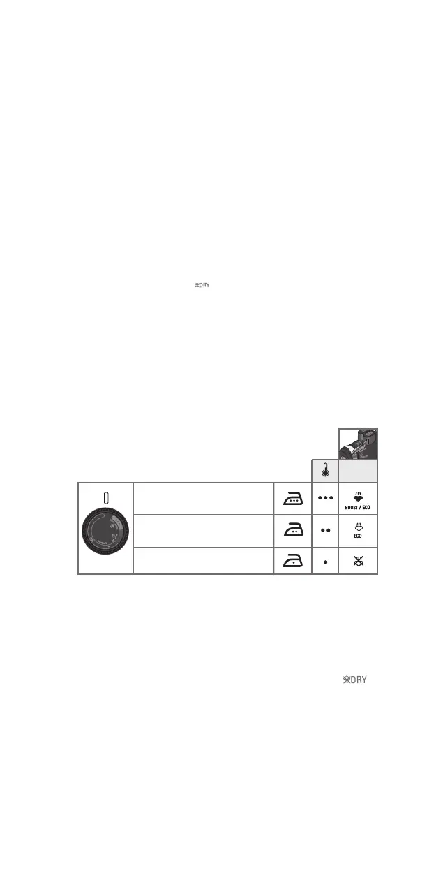 - Θέση ΣΤΕΓΝΟ (DRY): Για σιδέρωμα χωρίς ατμό, ιδανικό για ευαίσθητα υφάσματα