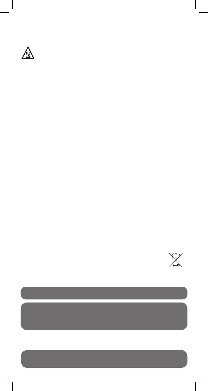 • Zuleitung nicht mit heißen Teilen des Gerätes in Berührung kommen lassen und nicht über
