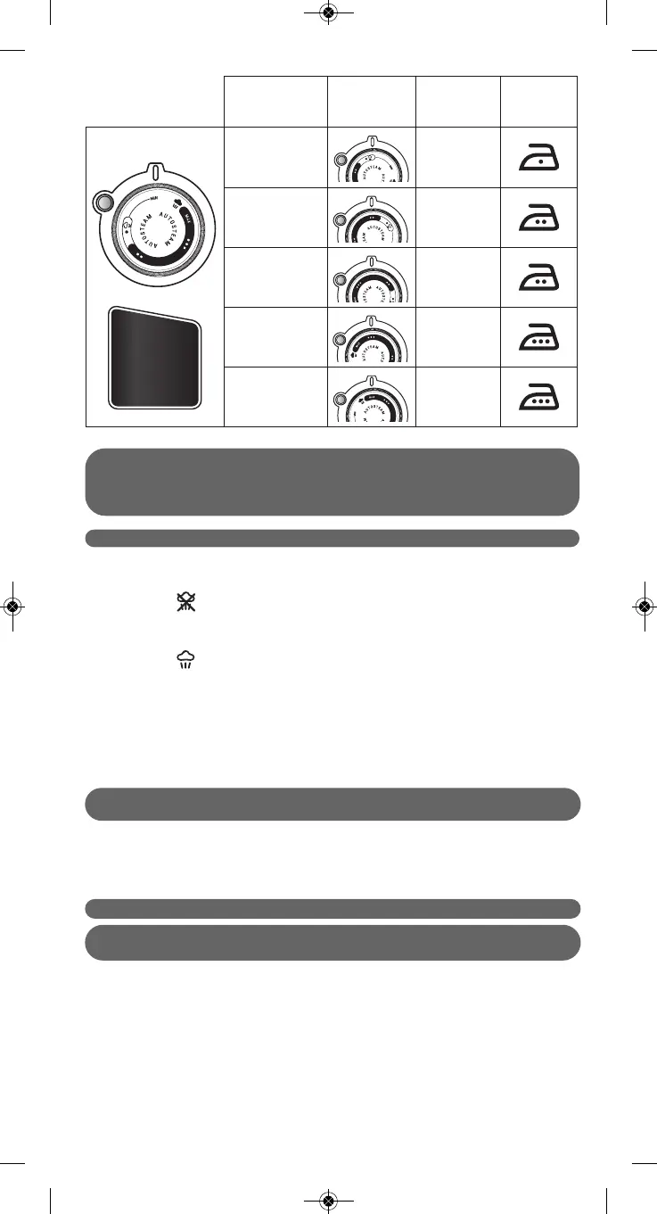 quantité de vapeur et la température s’adapteront automatiquement au tissu sélectionné.