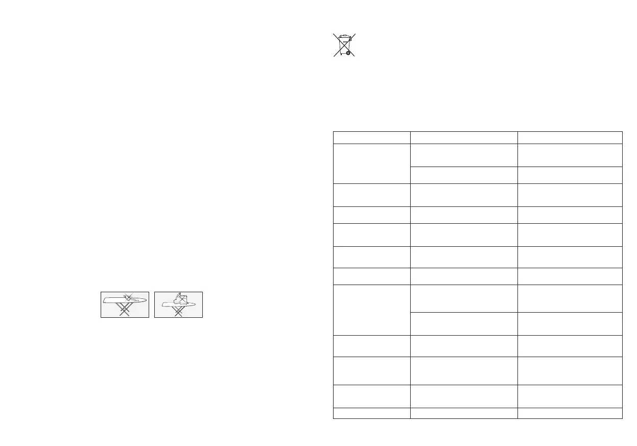 ustawiać oddzielnej podstawki na desce do prasowania (w zależności od modelu).