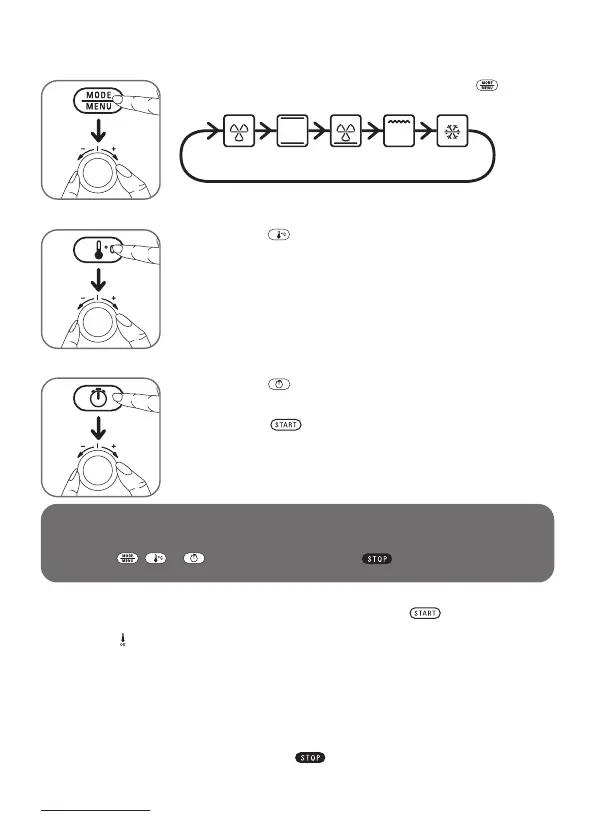 , of . Als u langere tijd op de knop drukt, gaat uw oven in