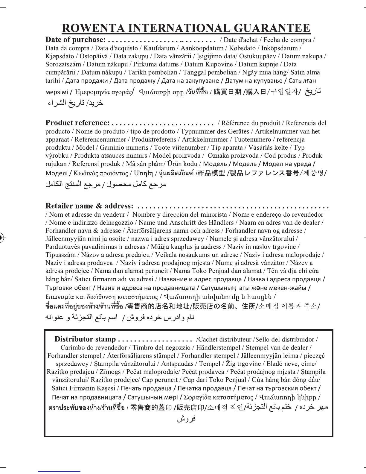 Rowenta Pro Perfect - International Guarantee; Recording Guarantee Details