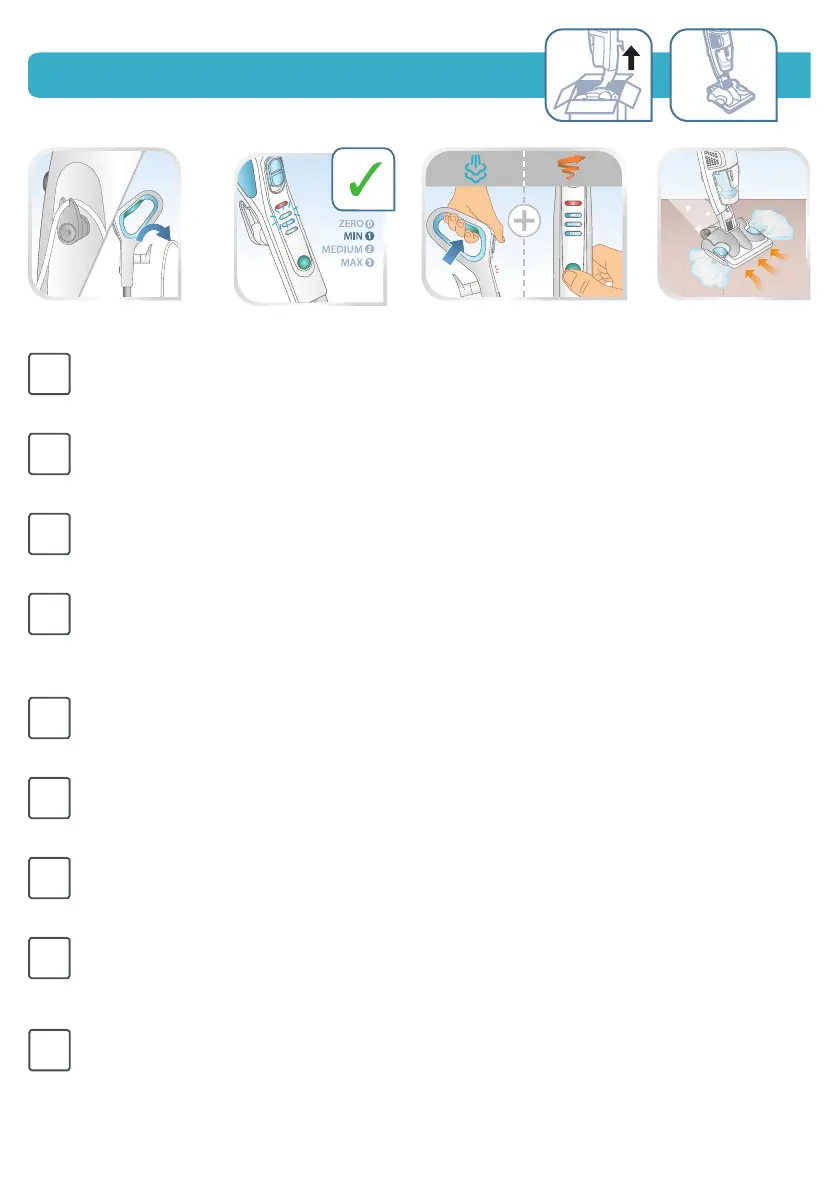 MEDIUM o MAX (piedra, azulejos). Pulse el botón de aspiración situado en el mango y