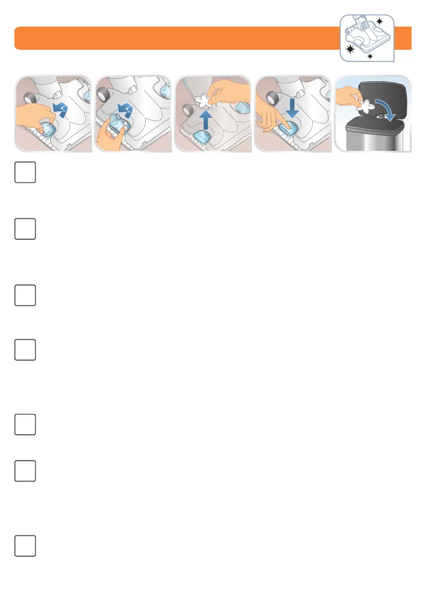 l’emplacement et stockez-les dans le récipient prévu à cet eet. Les pastilles sont réutilisables,
