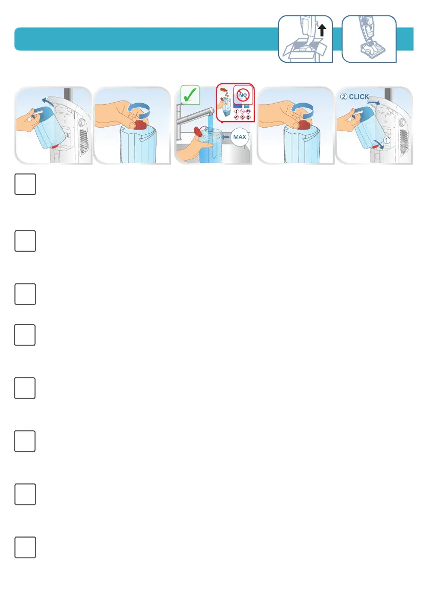 et remplissez le réservoir avec de l’eau du robinet. Attention: ne pas ajouter de produits