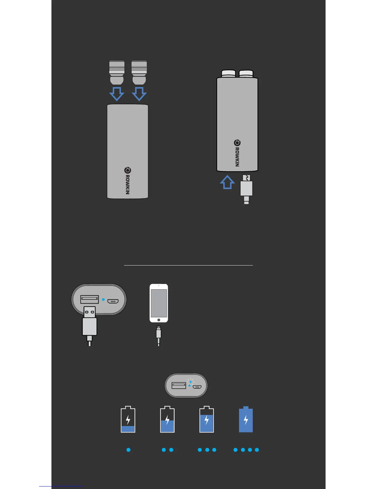 Rowkin BCT - Charging and Battery Levels; Charging Instructions; Battery Level Indicator Guide