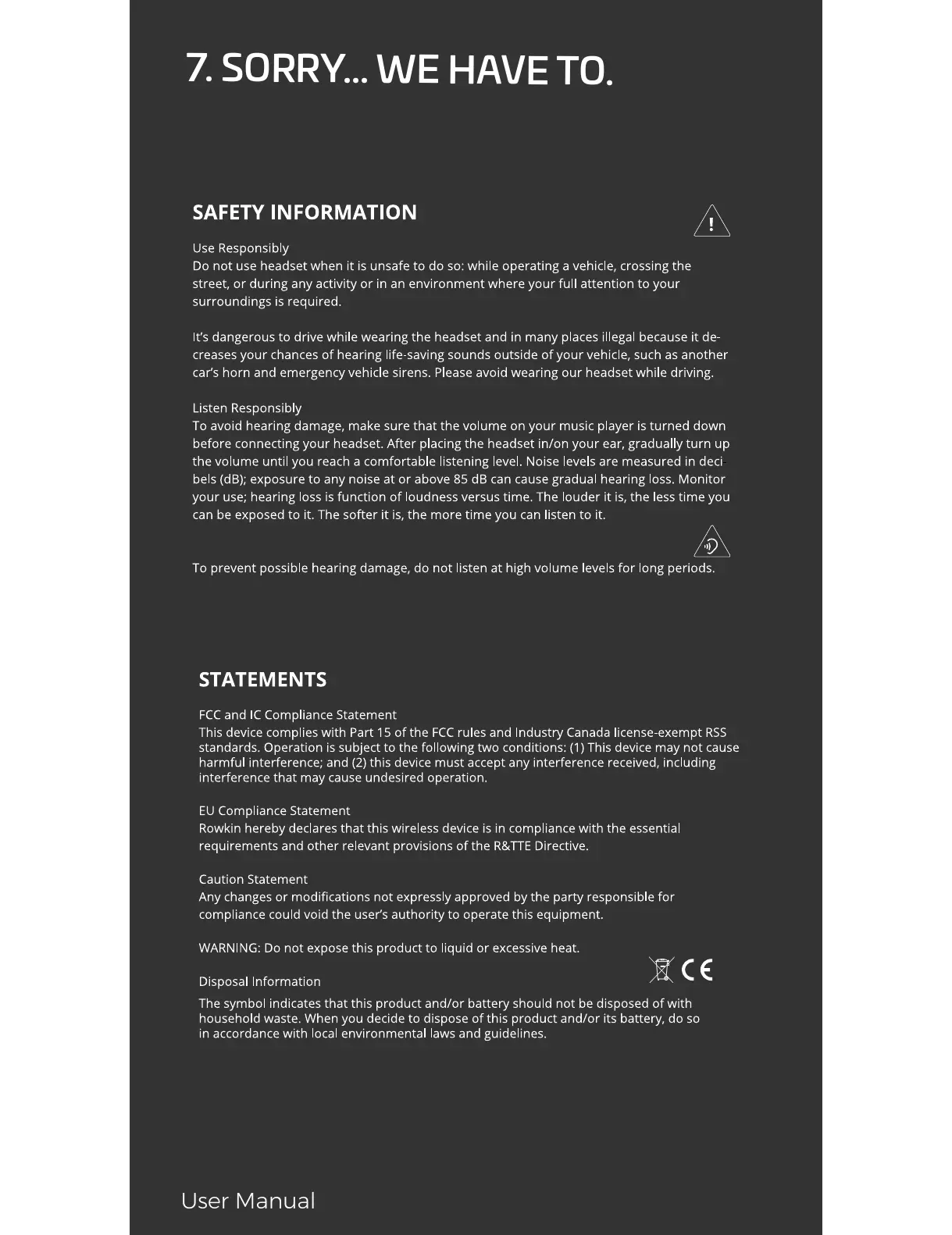 Rowkin BIT CHARGE TOUCH TRUE WIRELESS - Safety and Compliance; Usage Safety Guidelines; Compliance Information