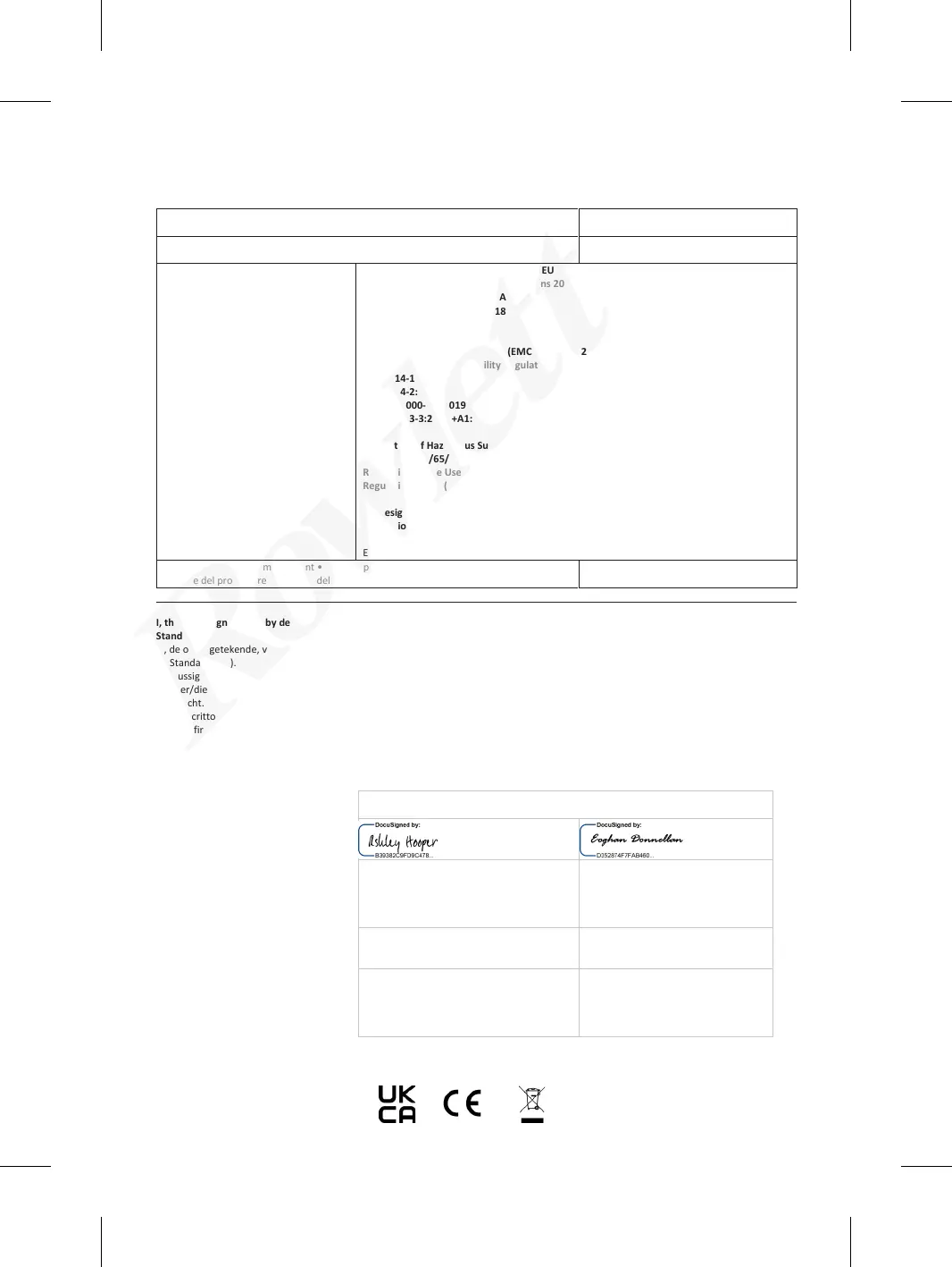 Ich, der/die Unterzeichnende, erkläre hiermit, dass das oben angegebene Gerät der/den oben angeführten Richtlinie(n) und Norm(en)