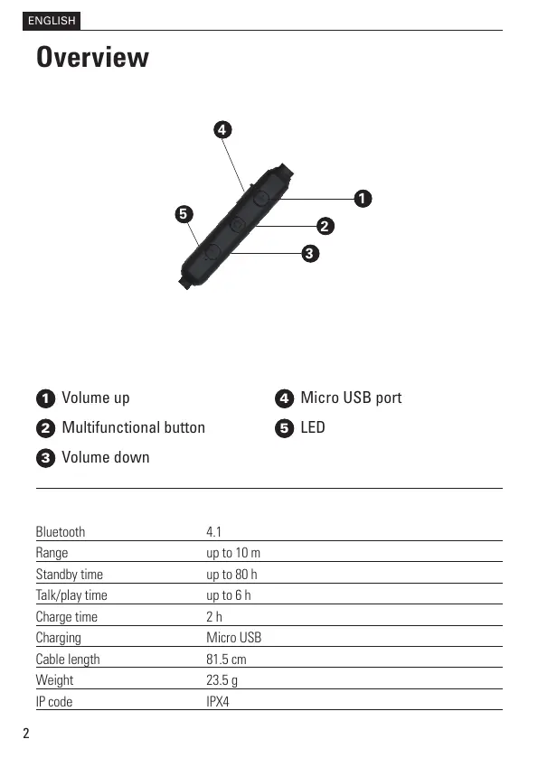 Roxcore Avenue Active - Overview; Volume Up Control; Multifunctional Button; Volume Down Control