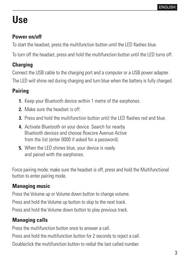 To turn off the headset, press and hold the multifunction button until the LED turns off.