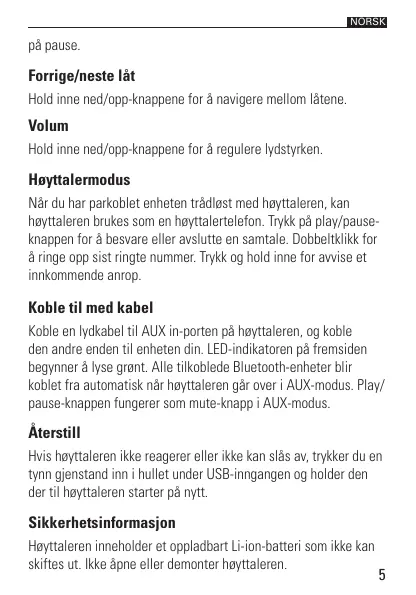 høyttaleren brukes som en høyttalertelefon. Trykk på play/pause-