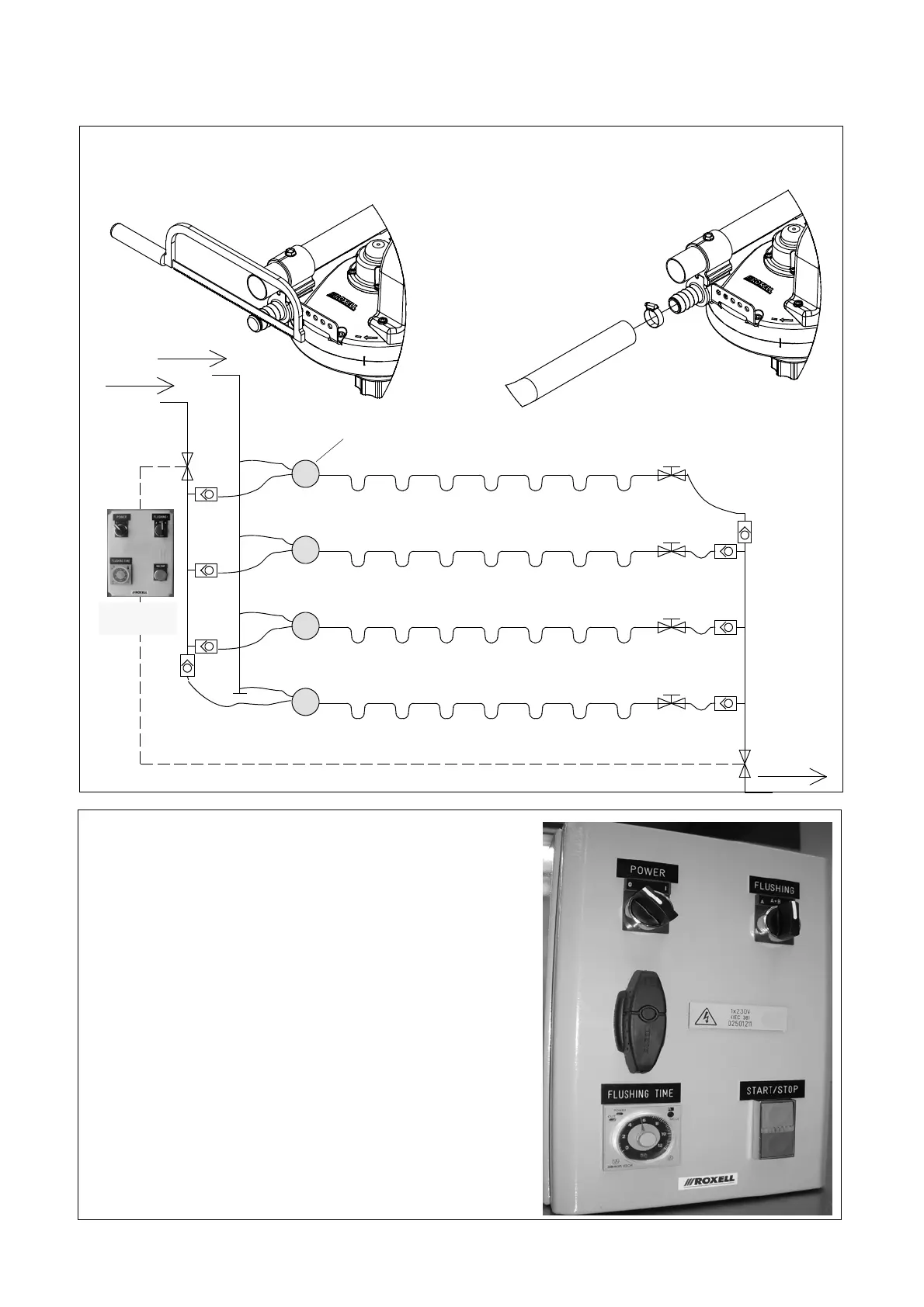CONDUIT LAYOUT FOR AUTOMATIC FLUSHING, FRONTAL PRESSURE REGULATORS.