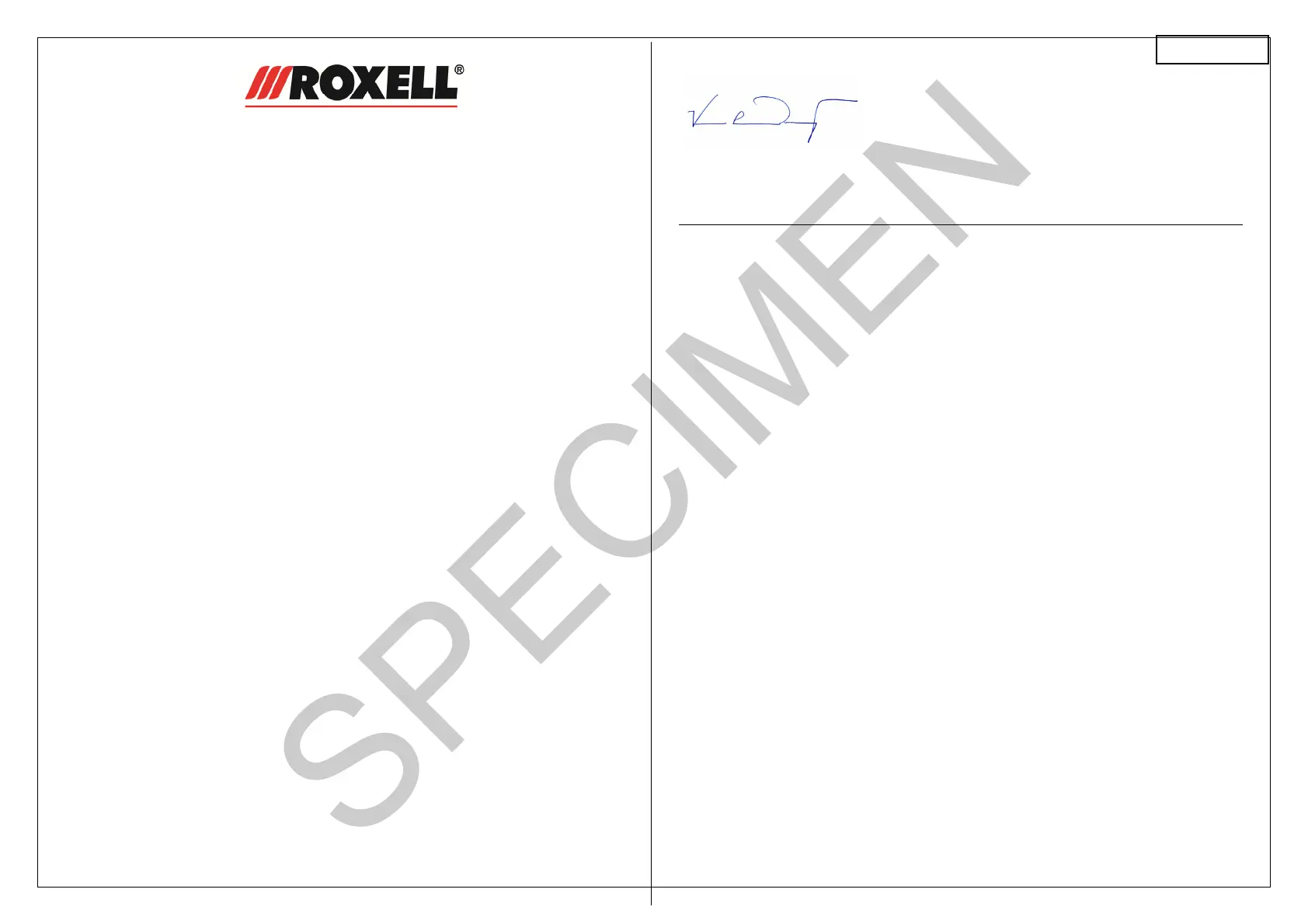 In een installatie te hebben ingebouwd geheel volgens de Roxell-voorschriften en in