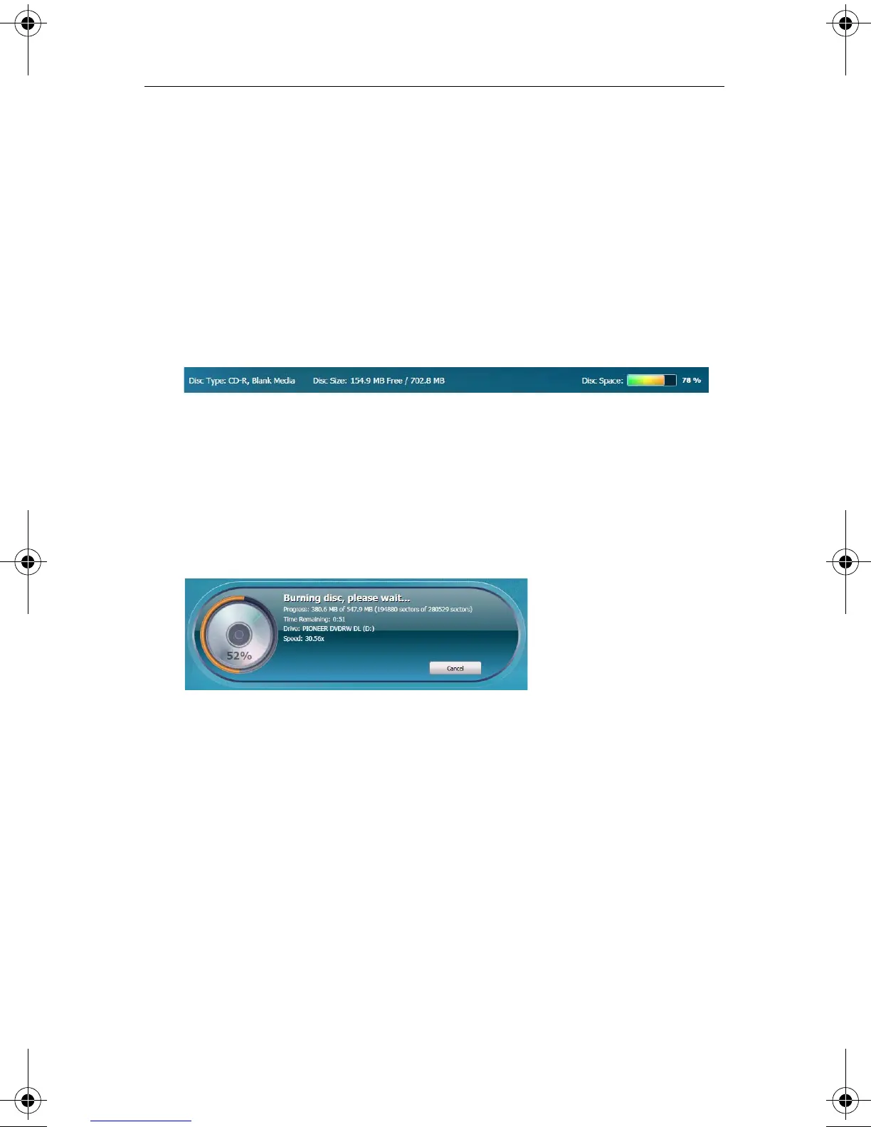 The progress indicator shows a burn in progress.