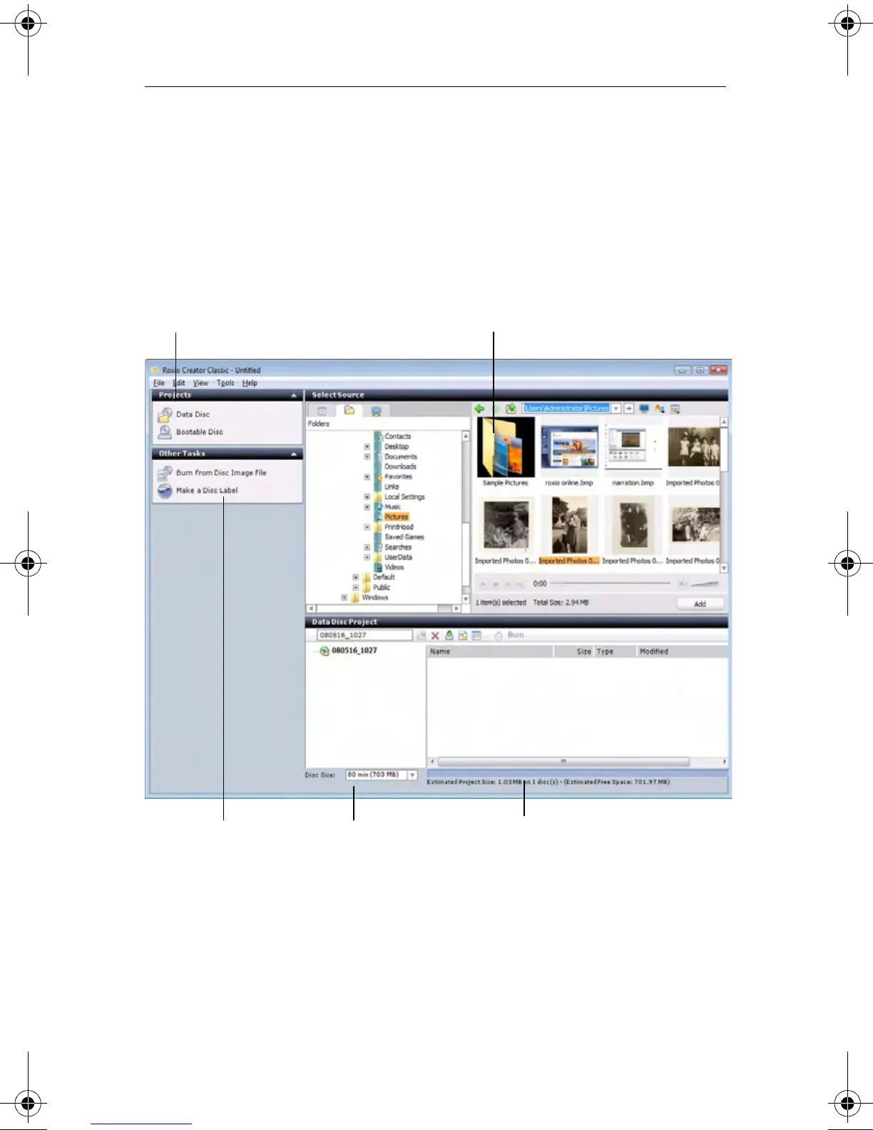 untitled Data Disc project. The parts of the window that are common