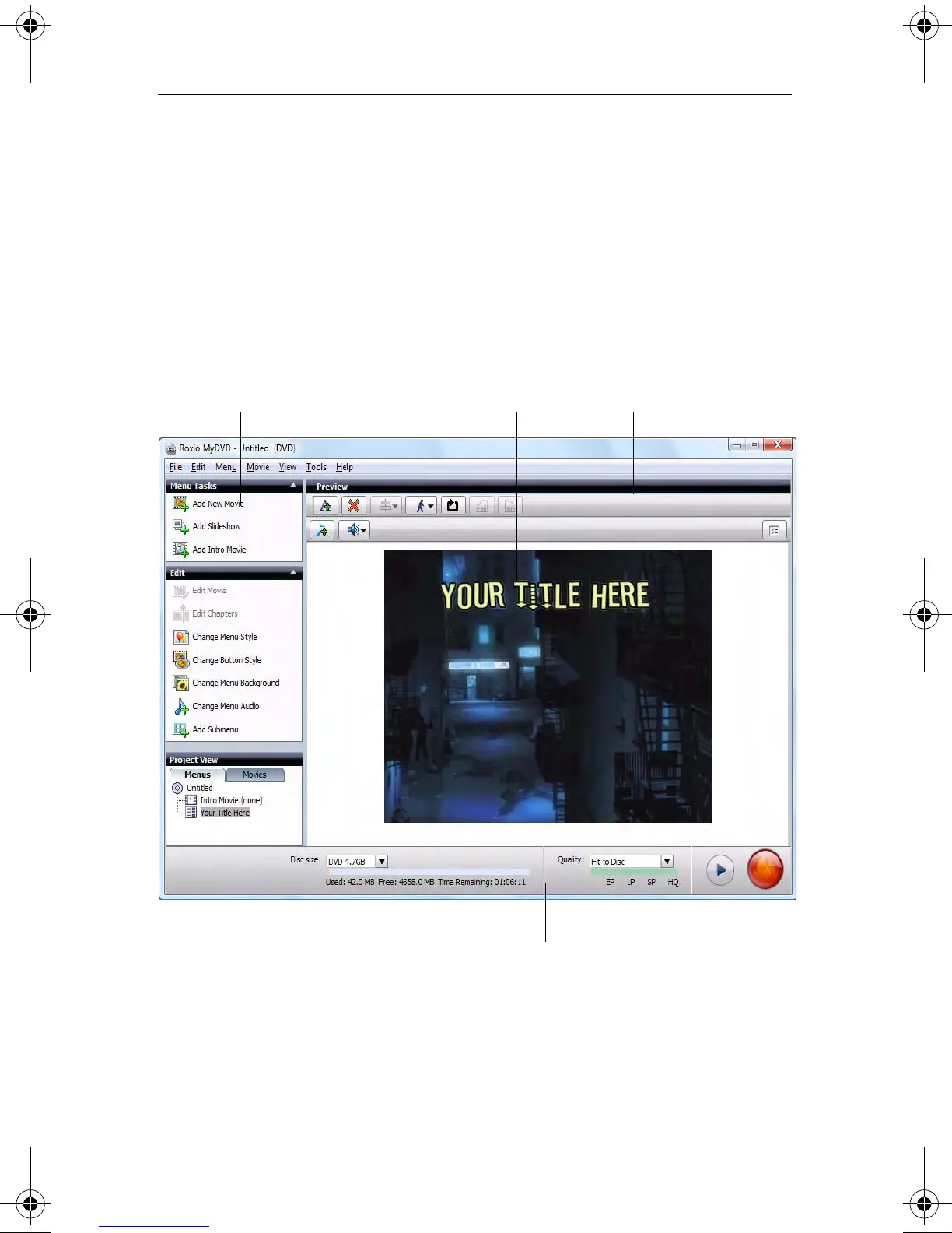 This section describes the MyDVD window Menu Edit view, and the Movie