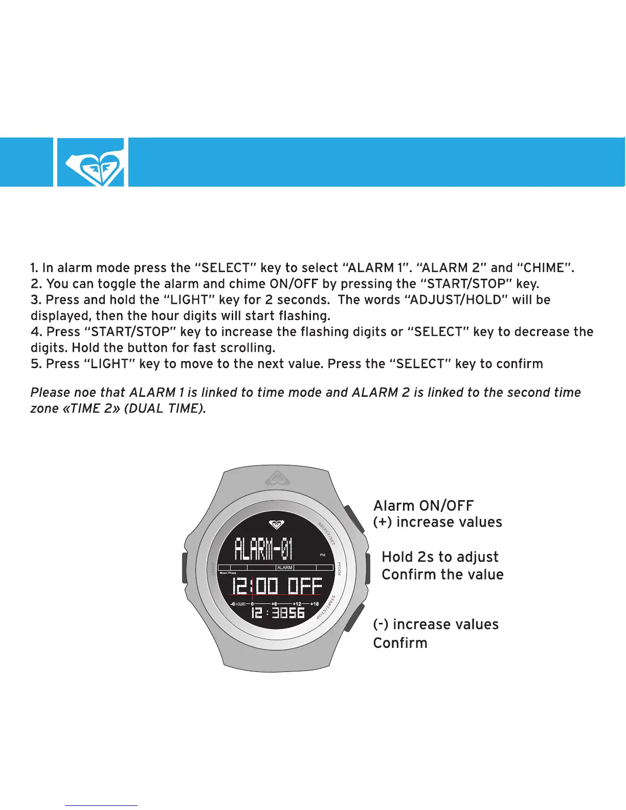 Roxy DEEP - ALARM FUNCTIONS; Selecting Alarm or Chime Modes; Activating and Deactivating Alarms; Setting Alarm Time