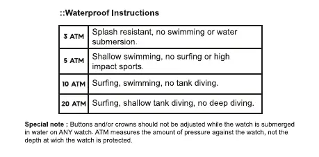 Roxy SHIBU DIGITAL - Waterproof Instructions; Waterproofing Special Note