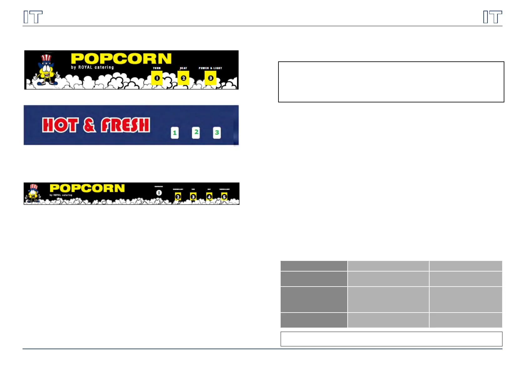3. Assicurarsi sempre che, durante la produzione dei popcorn, la porta della vetrina sia perfettamente chiusa,