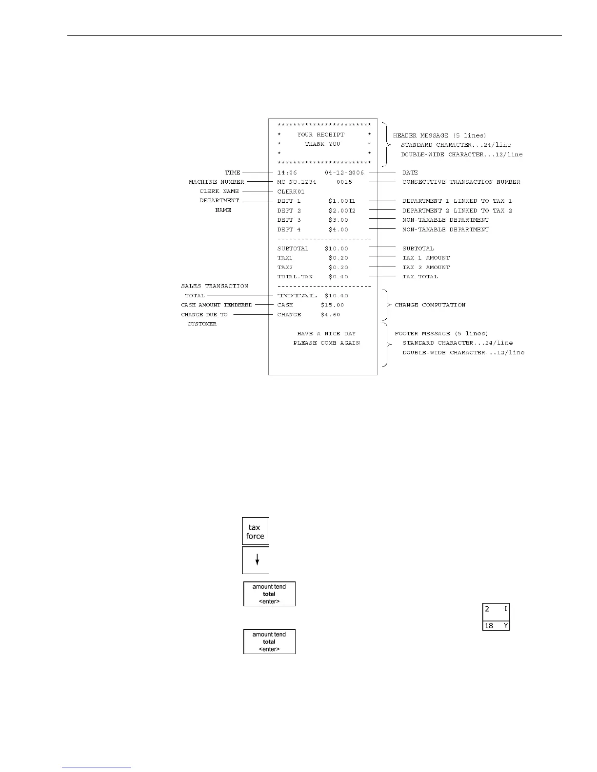 Example 4: Assume the Department 2 key is programmed for no tax and the