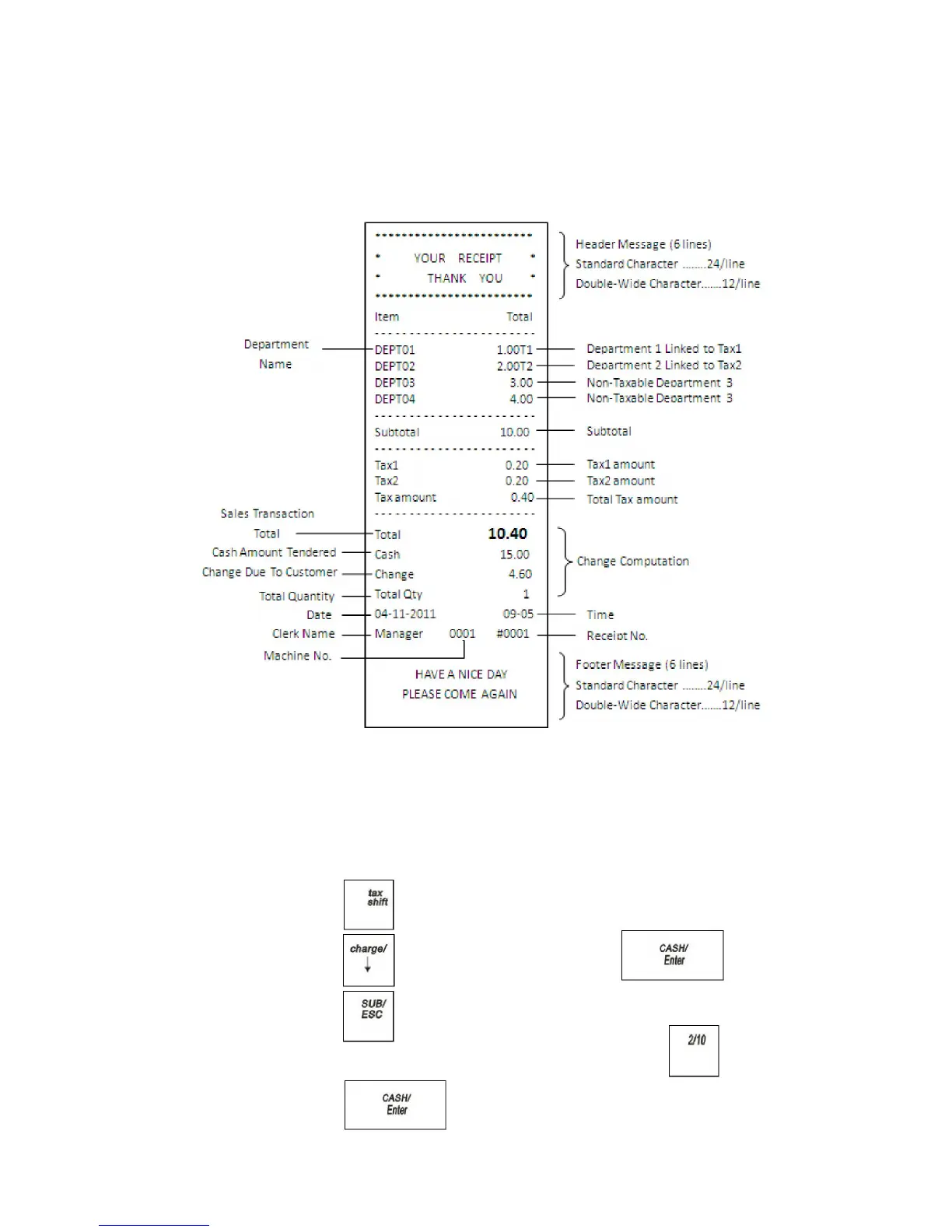 Example 1: Assume the Department 2 key is programmed for no tax and