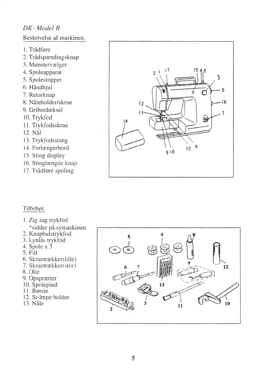 Royal 2608 - Beskrivelse Af Model B; Tilbeh0 Rsdele