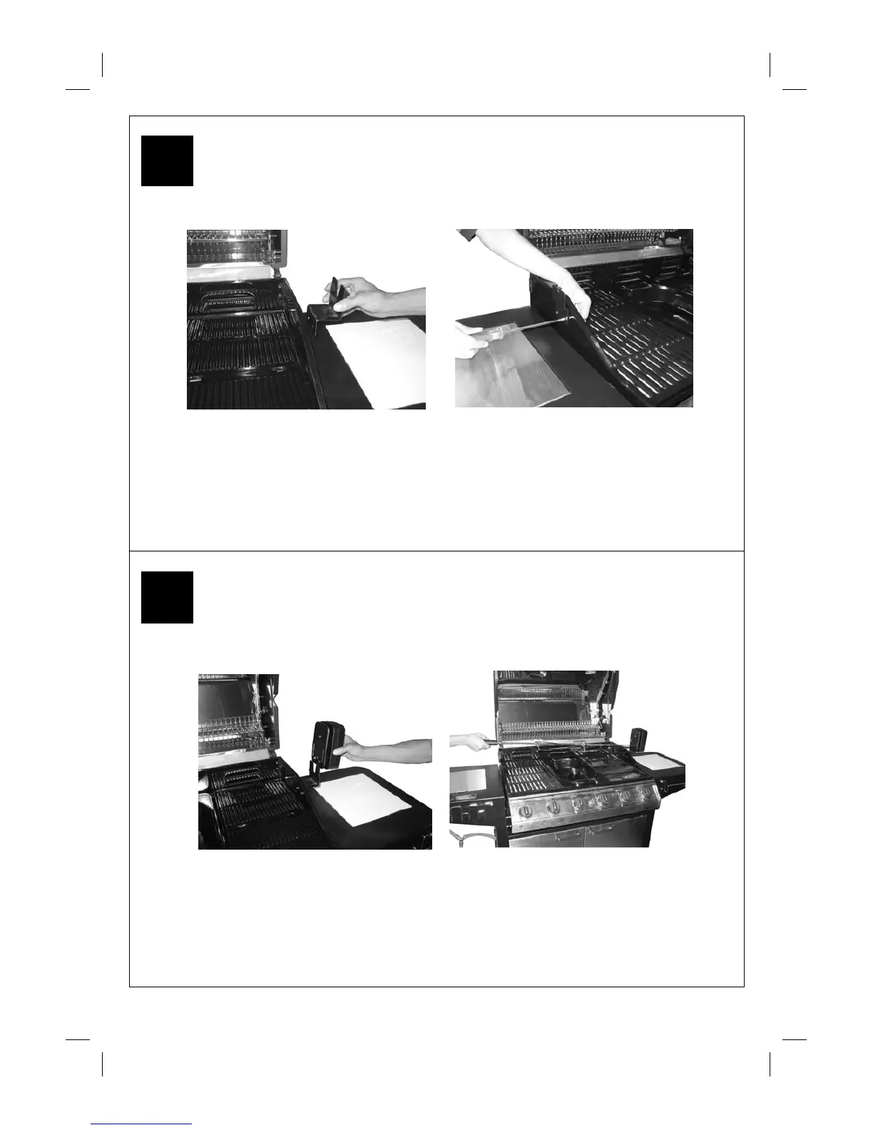 Attach the L/H and R/H Brackets (D5, D6) to the Barbecue Body using the