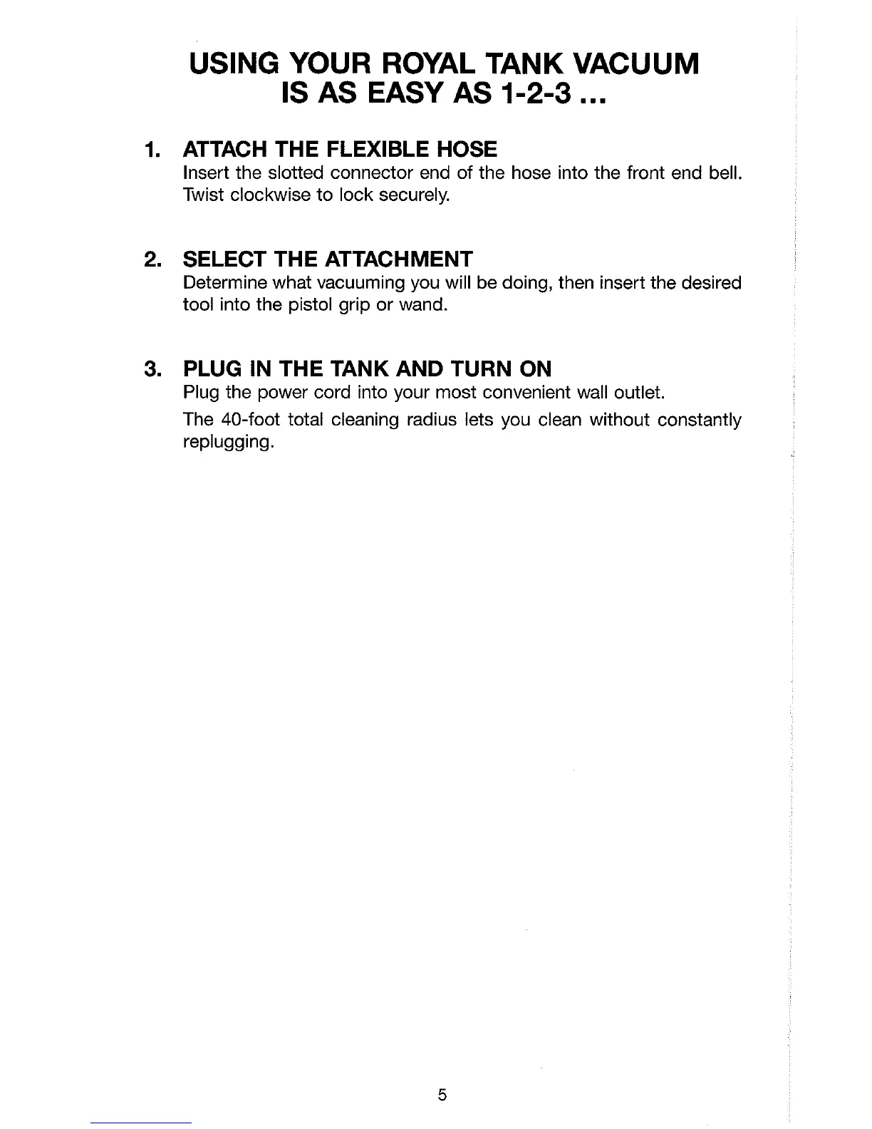 USING YOUR ROYAL TANK VACUUM