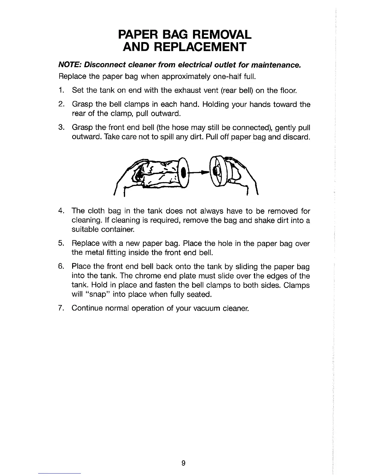 Replace the paper bag when approximately one-half full.