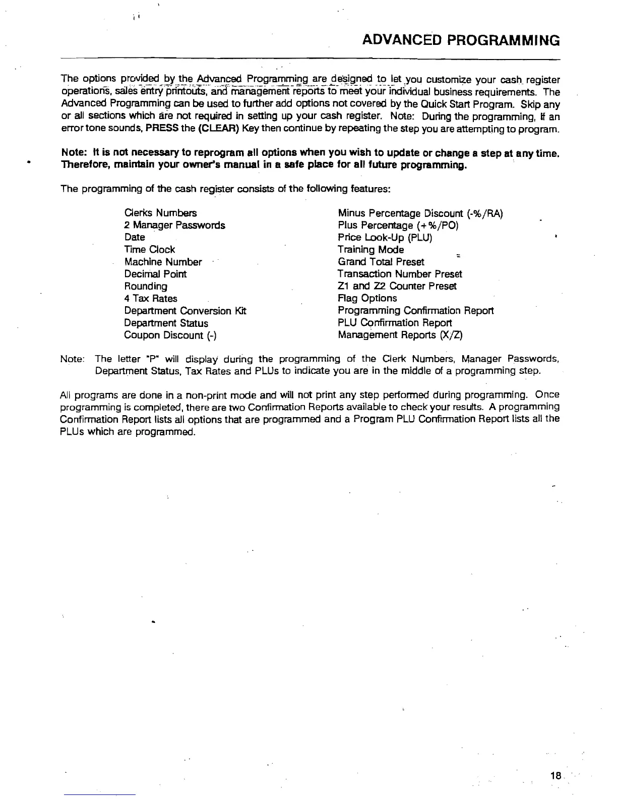 cash register. Note: During the programming, if an