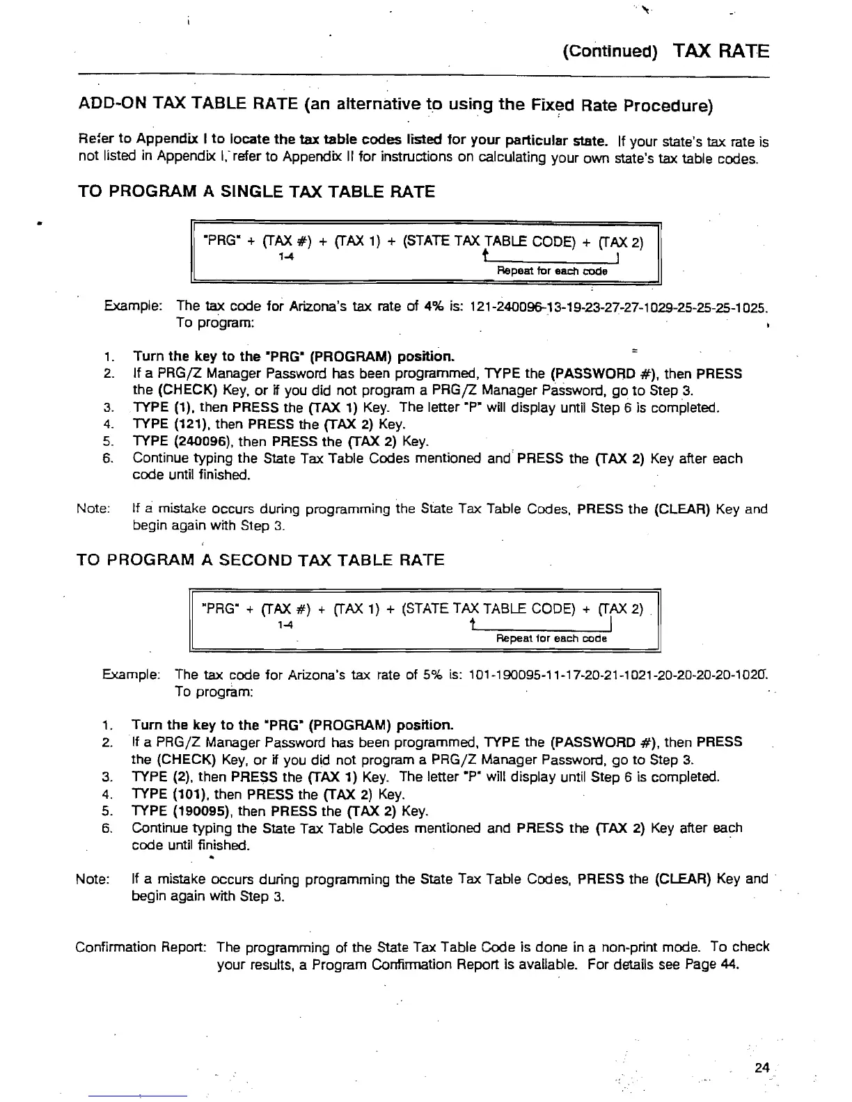 Note: If a mistake occurs during programming the State Tax Table Codes. PRESS the (CLEAR) Key