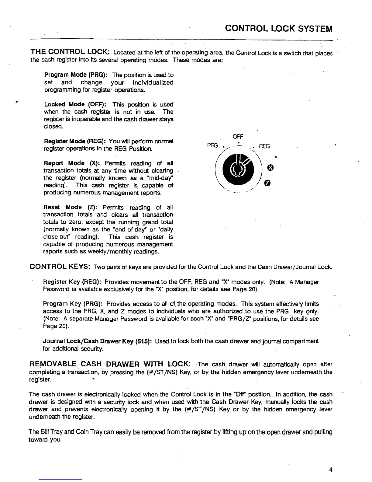 keys are provided for the Control Lock and the Cash Drawer/Journal Lock.
